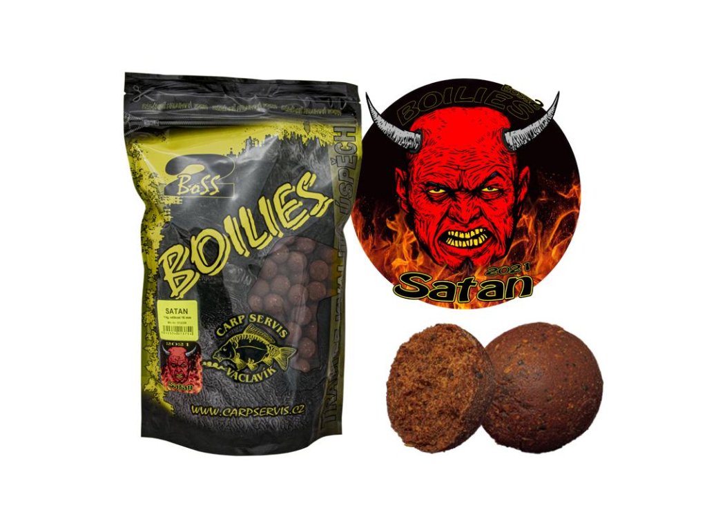 Dnes již Satan není novinkou, však zcela jistě je možné říci, že je pilířem současnosti. Pro tento komplex špičkových atraktorů jsme zvolili poněkud netradiční název. A sice SATAN. Není to náhodou. Vždyť která nástraha se může chlubit tak explozivním spektrem nutričních i atrakčních komponentů, které svou vyváženou účastí dávají tomuto boilies obrovský potenciál pro celoroční rybolov. Přestože se v Satanovi skrývá široká škála živočišných derivátů, nečekejte, že bude čistě letním speciálem. Zejména v chladném počasí závěru roku se nám Satan osvědčil jako úderná zbraň, jež se až zdá, že nebude mít pro tento čas konkurenta. Mezi takzvané standardy našich výrobků patří enzymatické suroviny a přírodní koření, které jsou bez pochyby stavebním pilířem ve většině našich boilies. Svou osobitost Satan získal z kombinace několika, pro tento typ boilies, vrcholných atraktorů. Jedná se zejména o mix extrémně pálivých výtažků z chilli, paprikově kořeněného základu a extraktu ze zelených bylin.