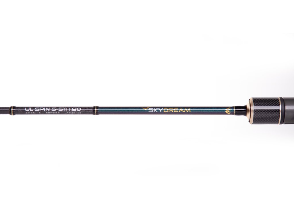 MIKADO Sky Dream UL Spin 180 cm je vysoce kvalitní prut navržený pro ultralehký přívlačový rybolov. Díky použití japonského uhlíku 46T, titanových oček FUJI SIC a sedla FUJI VSS nabízí extrémní citlivost a rychlou akci, což z něj činí ideální volbu pro lov okounů, pstruhů a dalších menších dravců.
